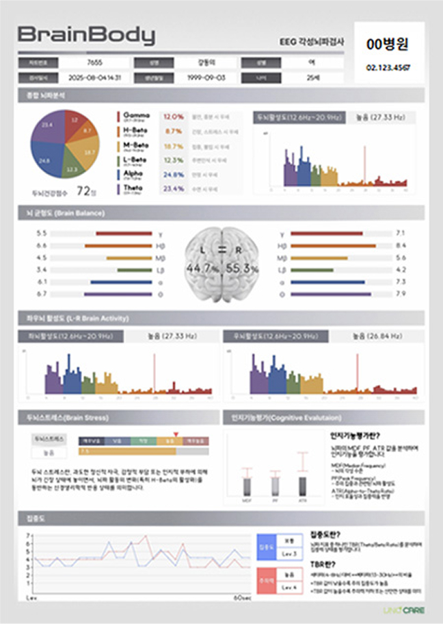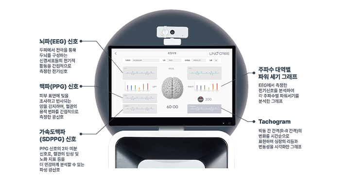 뇌파와 맥파를 하나의 기기에서 분석이 가능하며,