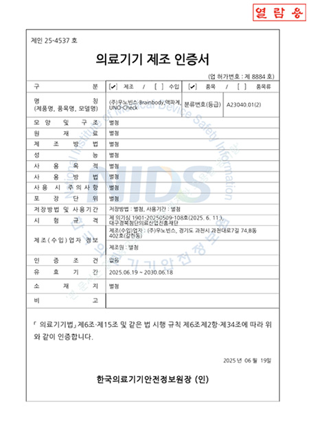 1. 제품명 (모델명): BrainBody (UNO-Check) |