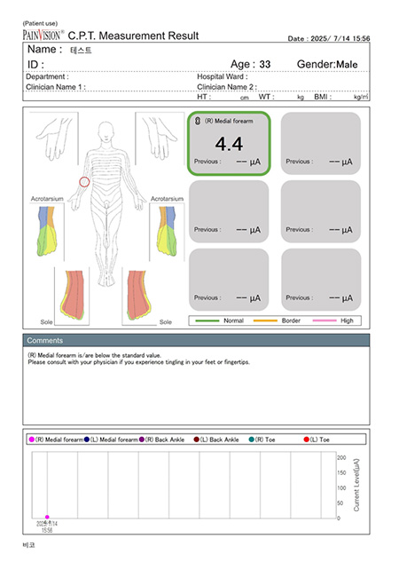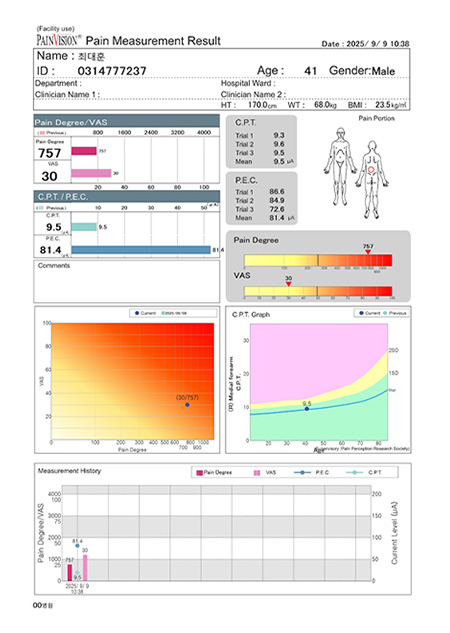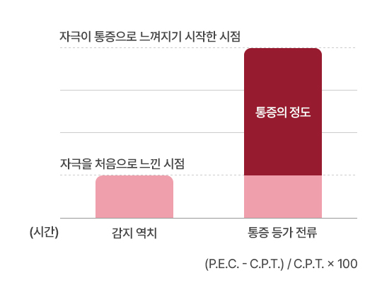 개인의 주관적인 통증 감각역치를 제거하기 때문에 정확한 Pain Degree를 정량화 할 수 있다.