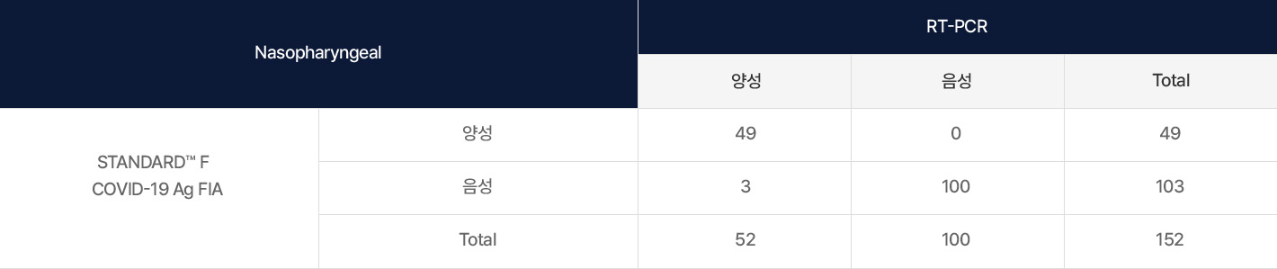 | 호흡기 | STANDARD F COVID-19 Ag FIA | 비인두 도말, 비강도말, VTM | - | 15분 | 25T |